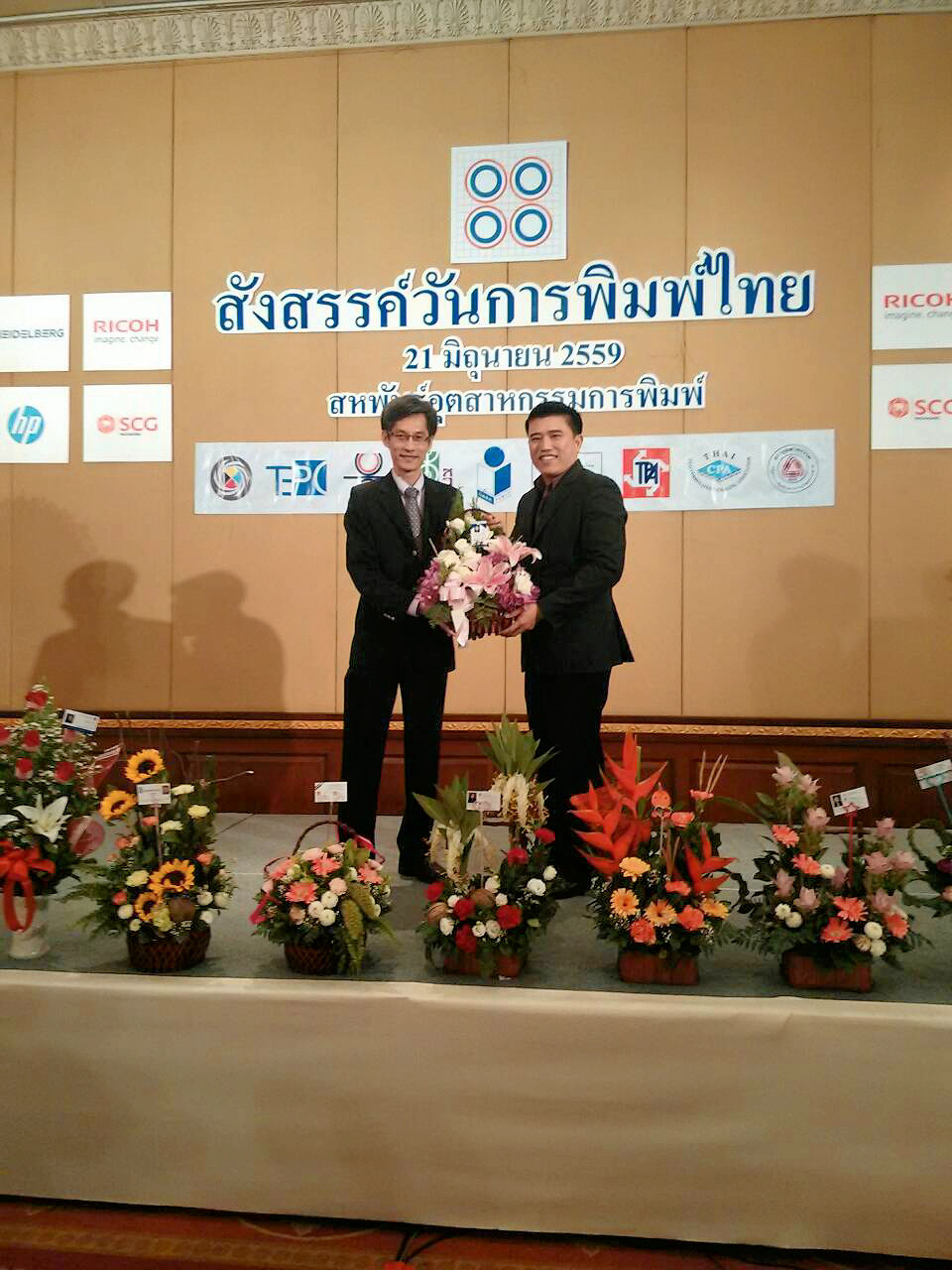 คุณจเรศักดิ์ ทรงวุฒิวิชัย อุปนายสมาคมฝ่ายต่างประเทศ ของสมาคมป้ายและโฆษณา ปฏิบัติภารกิจแทนนายกสมาคมฯ โดยเป็นผู้แทนสมาคมฯ เพื่อเข้าร่วมงานเลี้ยงสังสรรค์วันการพิมพ์ไทย 2559 พร้อมมอบกระเช้าดอกไม้แสดงความยินดีกับประธานสหพันธ์อุตสาหกรรมการพิมพ์ เมื่อวันที่ 21 มิถุนายน 2559