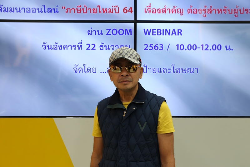 การนี้ สมาคมป้ายและโฆษณา ภายใต้การบริหารงานของคุณกิติชัย ศรีจำเริญ (นายกสมาคมป้ายและโฆษณาปีบริหารที่ 2563-2565) จึงได้พิจารณาเห็นควรให้จัดงานสัมมนาออนไลน์ “ภาษีป้ายใหม่ปี 64 เรื่องสำคัญ ต้องรู้สำหรับผู้ประกอบการ” ผ่านระบบ ZOOM Webinar เมื่อวันอังคารที่ 22 ธันวาคม 2563 เวลา 10.00-12.00 น. ที่ผ่านมา