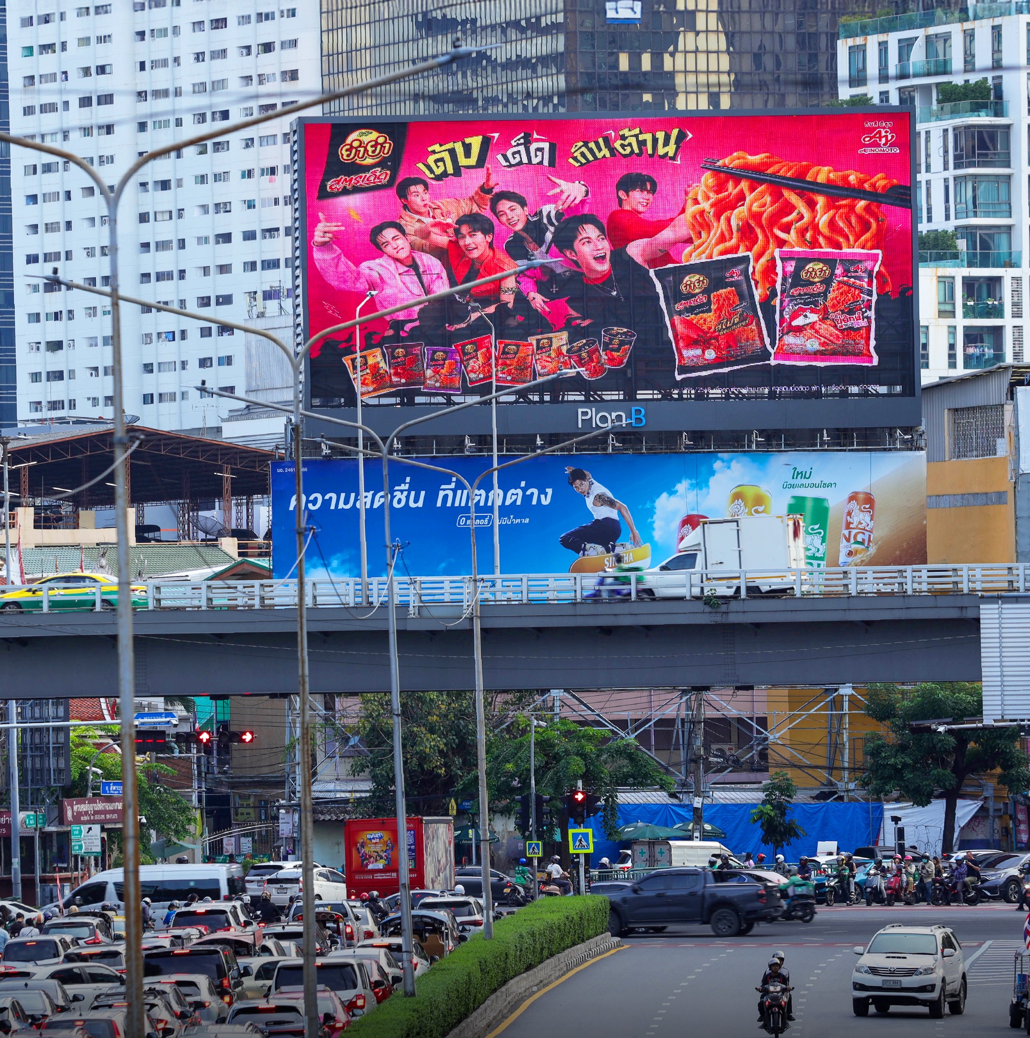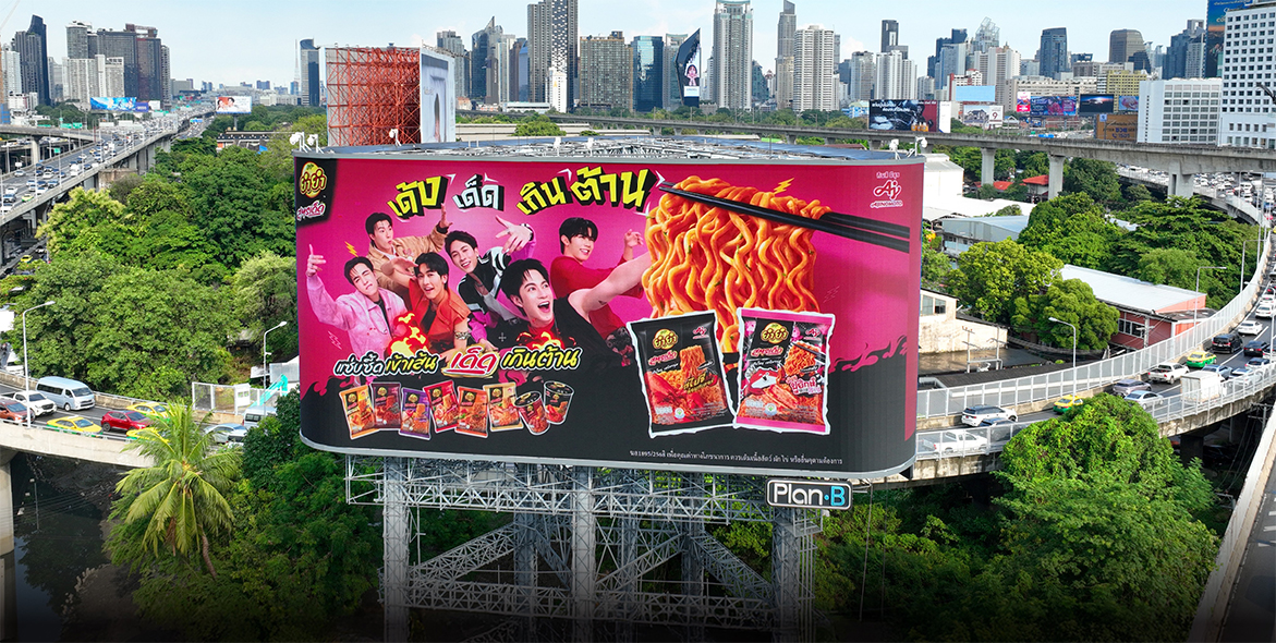 และเพื่อให้แบรนด์ เด้งขึ้นมาในชีวิตประจำวันของคนเมือง ยำยำเลือกใช้สื่อนอกบ้านแบบ City-Wide Takeover โดย Plan B Media ทำให้ PROXIE ปรากฏตัวบนทุกเส้นทางที่คนรุ่นใหม่เดินผ่าน: