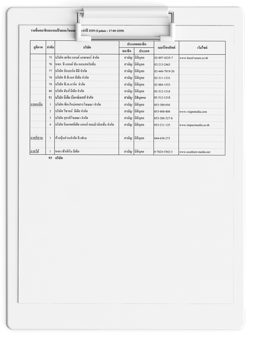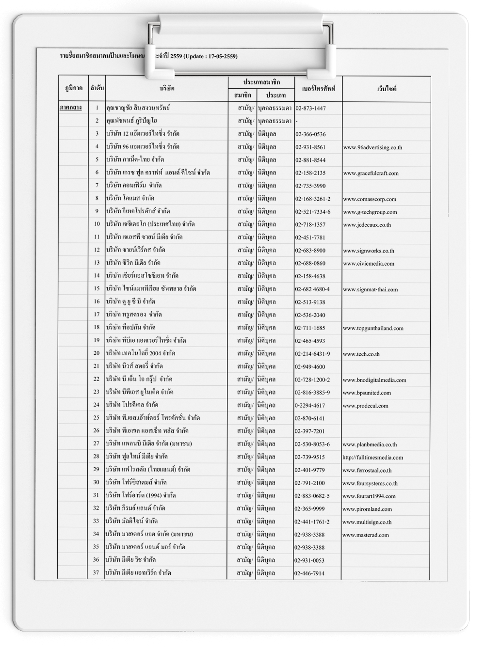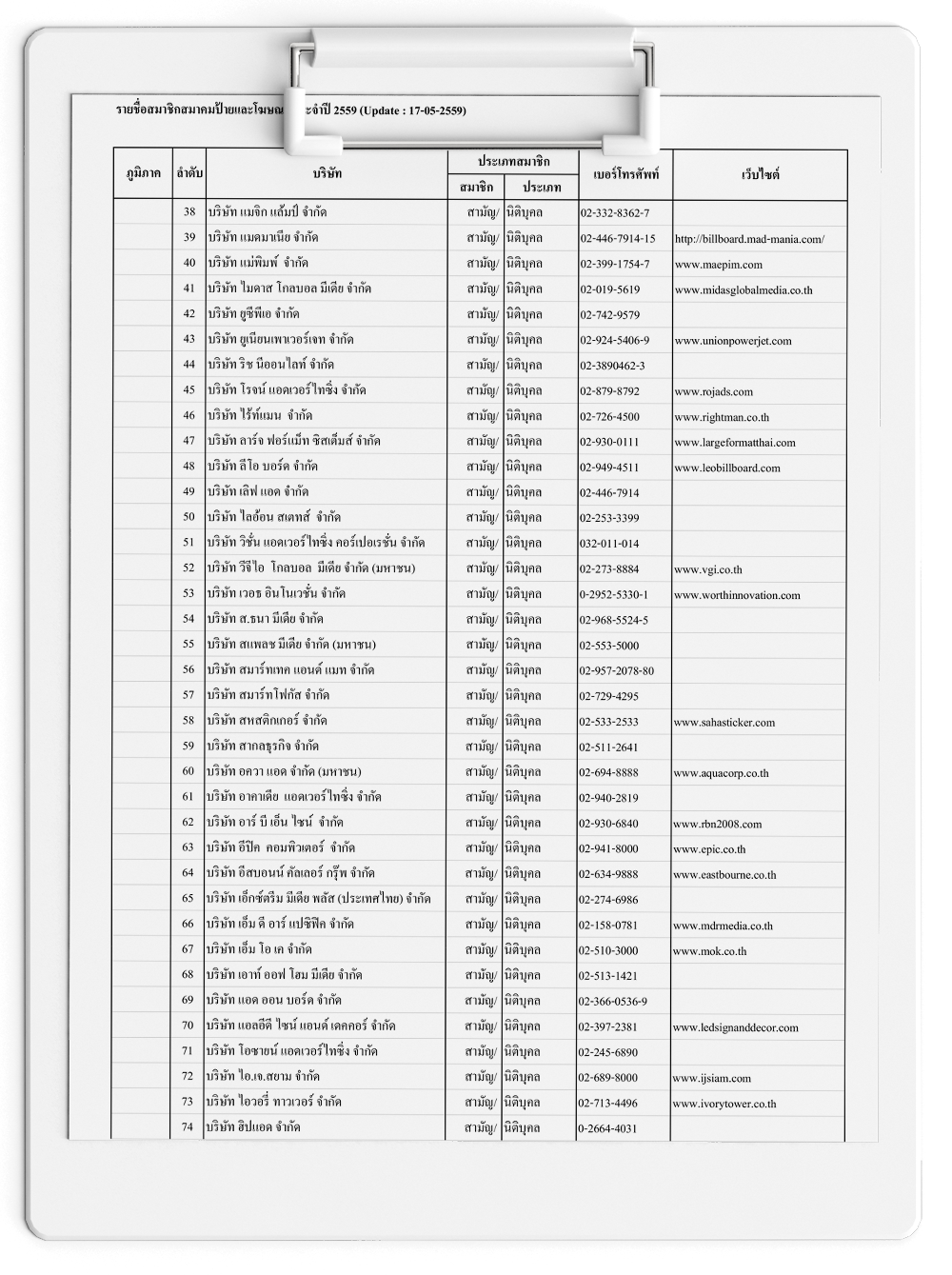 รายชื่อสมาชิกสมาคมป้ายและโฆษณา ประจำปี 2559