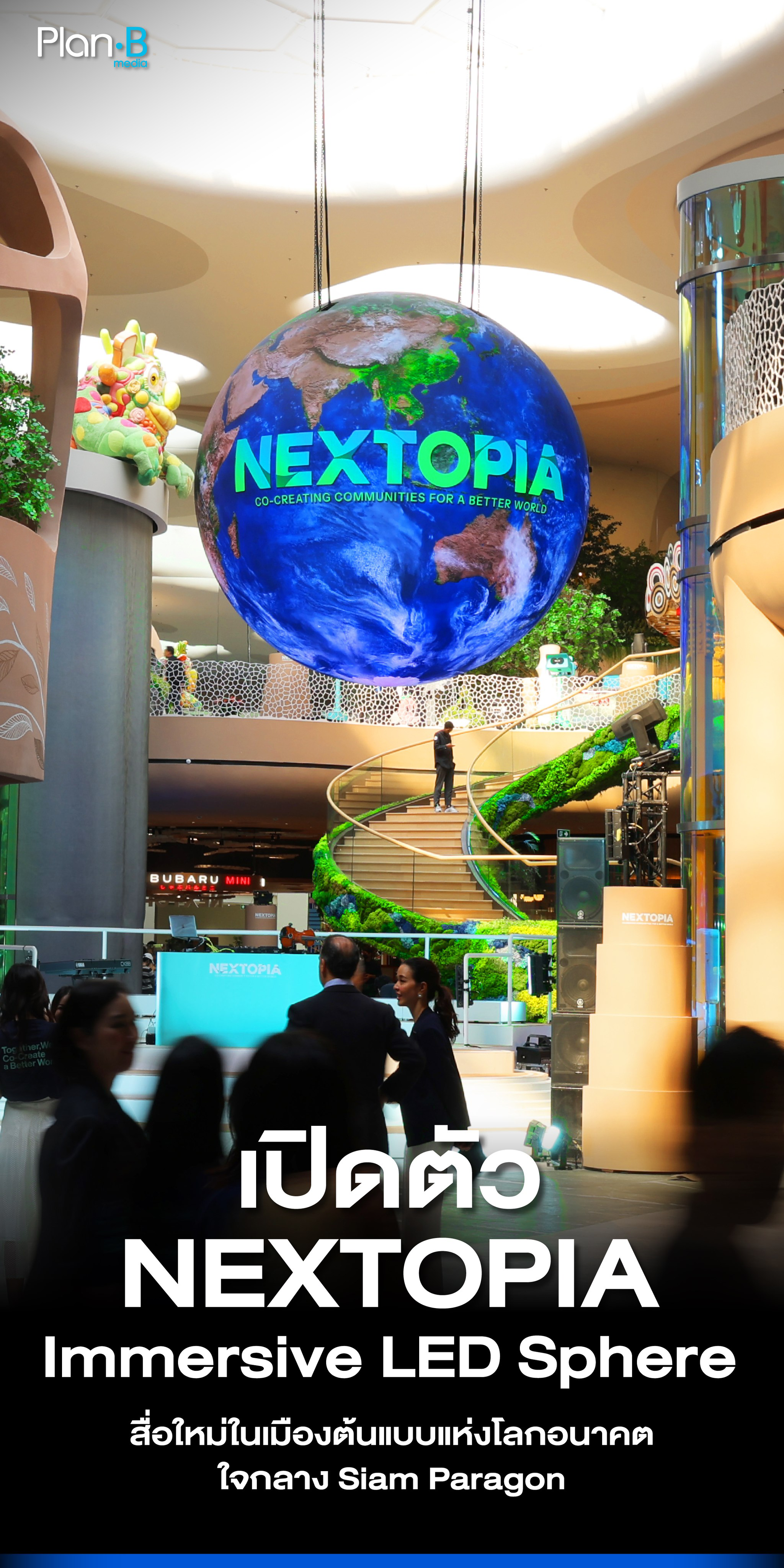 NEXTOPIA Immersive LED Sphere สื่อจอทรงกลมรูปแบบใหม่ล่าสุด ที่ออกแบบมาเพื่อมอบประสบการณ์ 360° Immersive อย่างเต็มมิติ ช่วยให้แบรนด์เล่าเรื่องวิสัยทัศน์ นวัตกรรม และความยั่งยืนได้อย่างทรงพลัง รองรับคอนเทนต์ด้าน ESG รวมถึงข้อมูลโลกจริงแบบเรียลไทม์ เช่น สภาพภูมิอากาศและเหตุการณ์ธรรมชาติจาก GISTDA / NASA